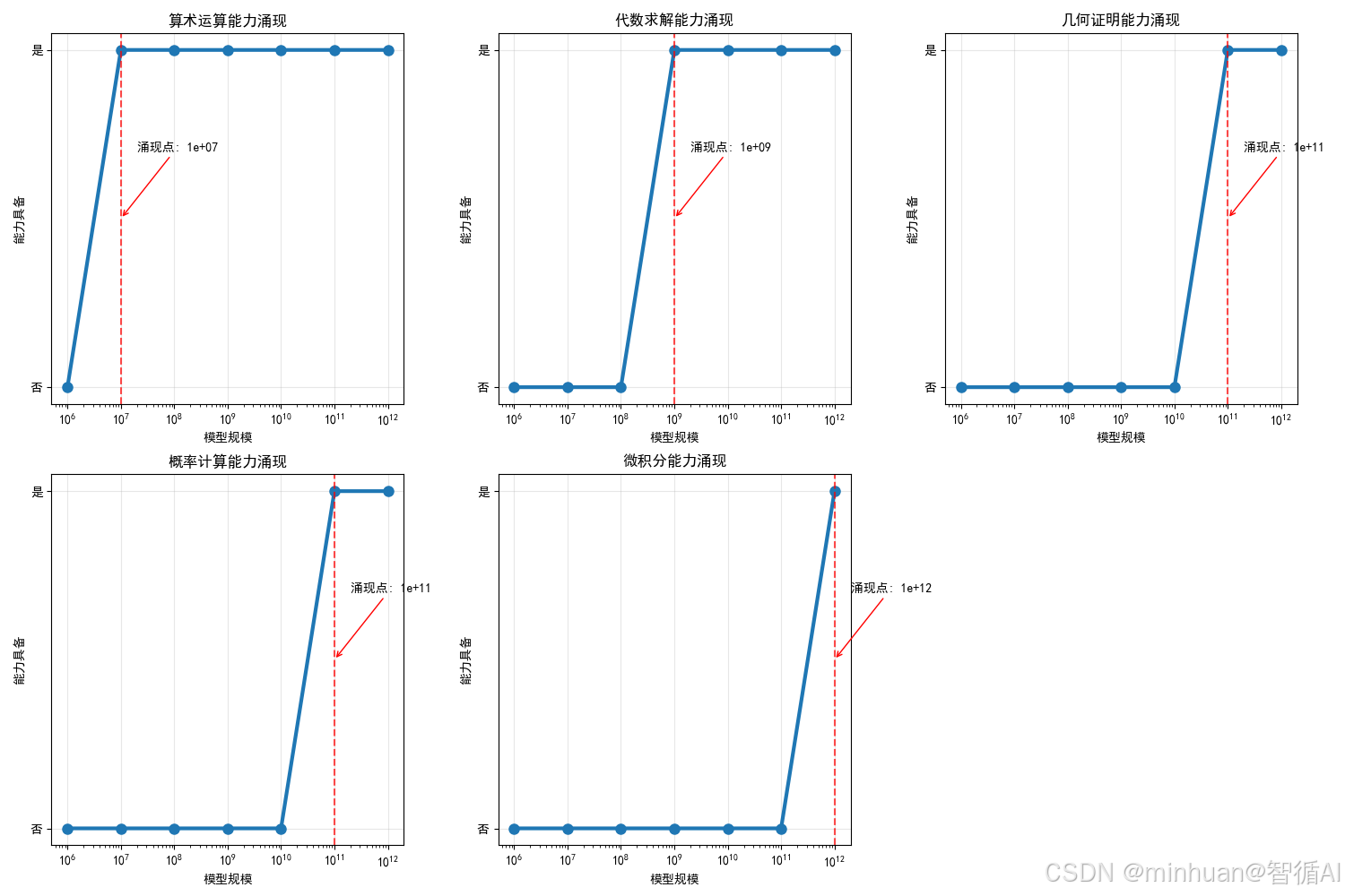 每个层次的相变都对应着不同的规模阈值,形成了能力涌现的阶梯式结构。