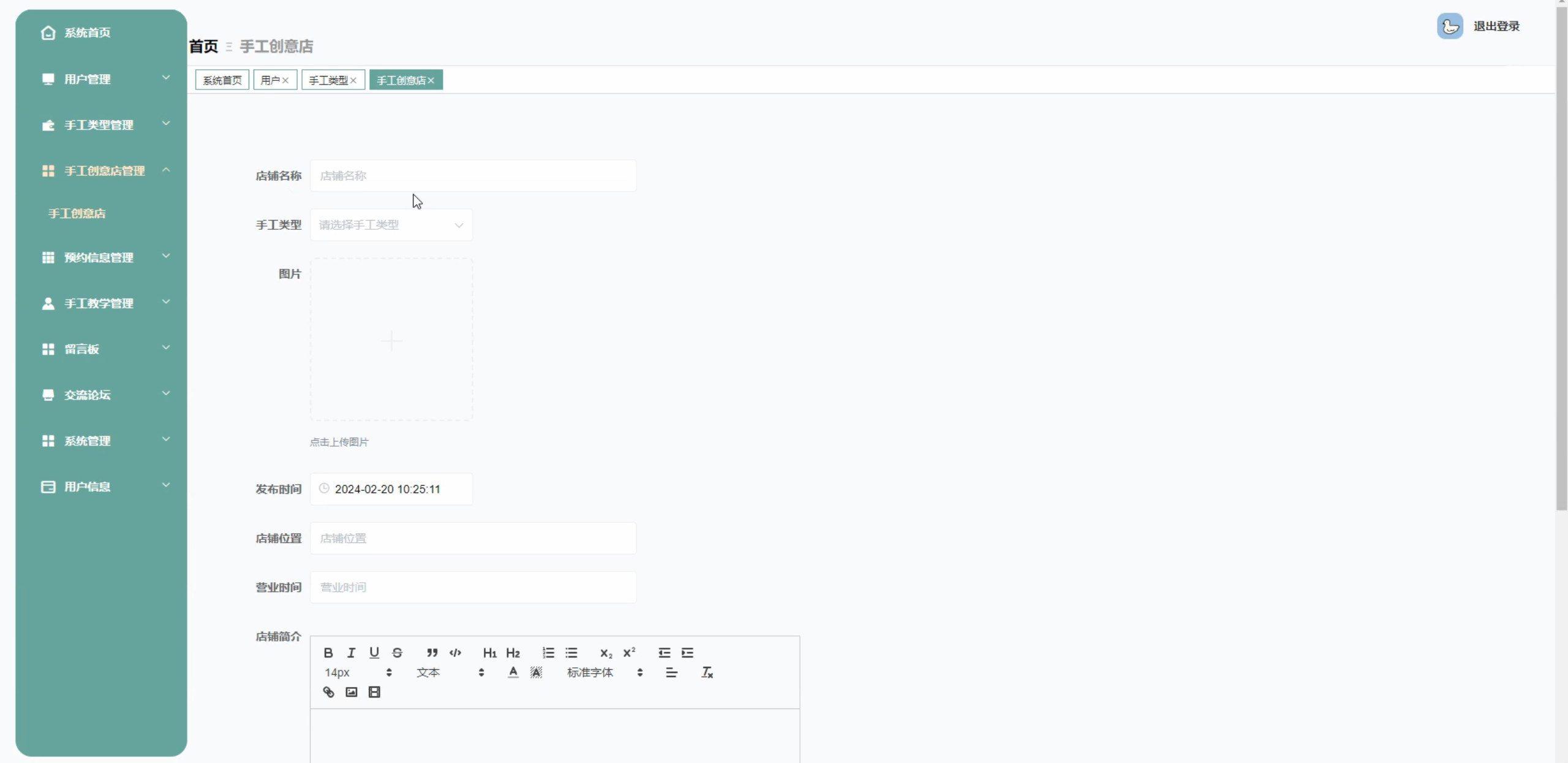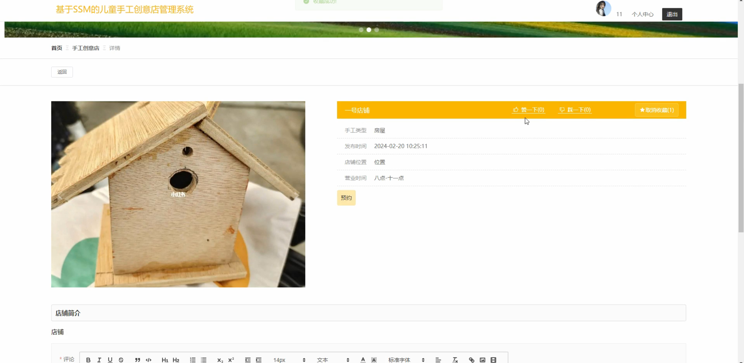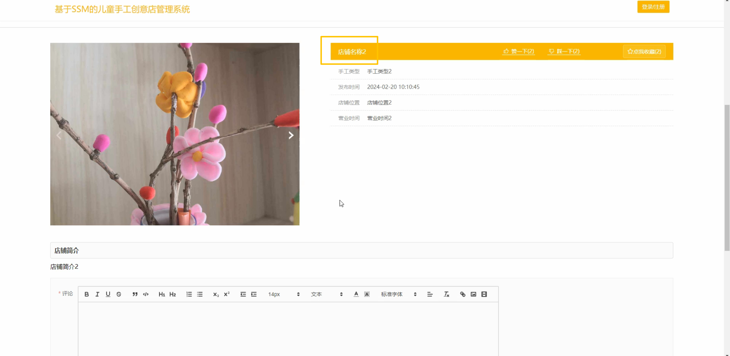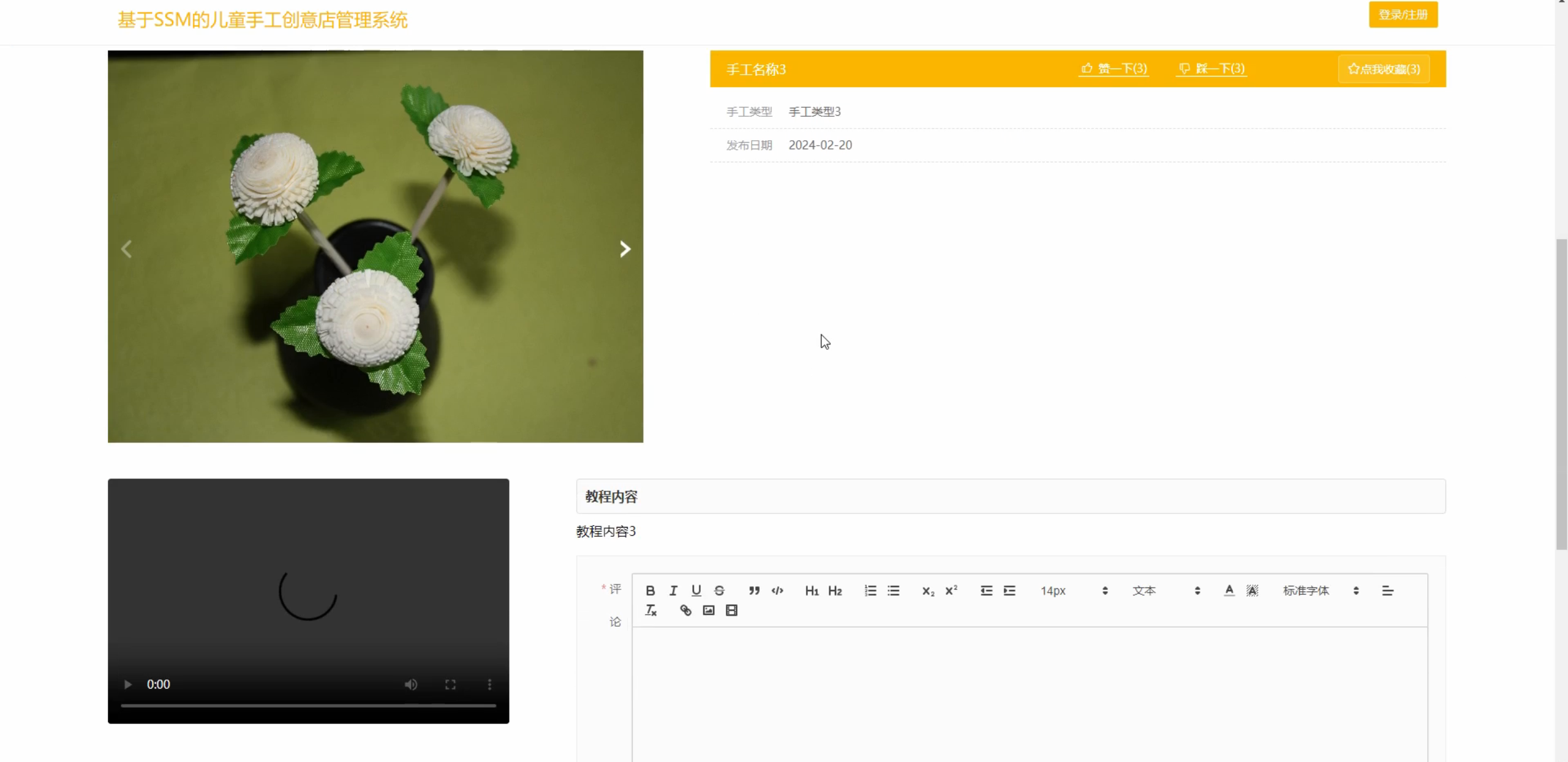 设计并实现一个基于Vue.js的儿童手工创意店管理系统,支持以下功能: