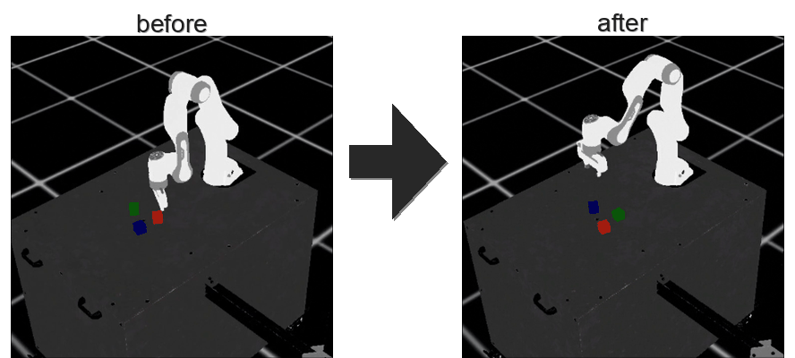 人工演示:在仿真环境下遥控机械臂本体,进行任务演示数据的记录