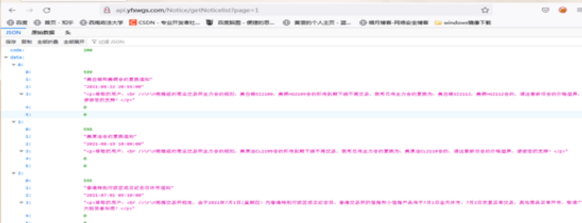 5. 在浏览器中打开---http://api.yfxwgs.com/Notice/getNoticelist?page=1