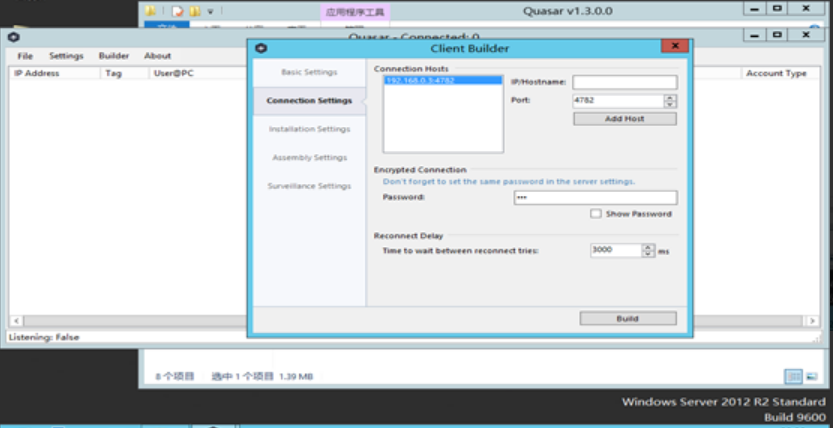 下载安装后门软件在虚拟机服务器,并且监听