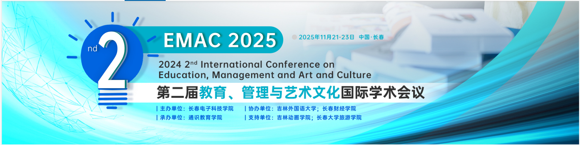 第二届教育、管理与艺术文化国际学术会议(EMAC 2025)将于2025年11月21-23日日在中国长春召开。会议主题主要围绕教育,艺术文化,管理等相关研究领域展开讨论,旨在为相关领域的专家学者及企业发展人提供一个分享研究成果、讨论存在的问题与挑战、探索前沿科技的国际性合作交流平台。热忱欢迎高校,科研机构专家,学者企业界人士及其他相关人员踊跃投稿并参会交流,与会学者们可通过此次会议聆听知名专家的精彩报告,一同分享行业内领先的研究成果与创新想法。