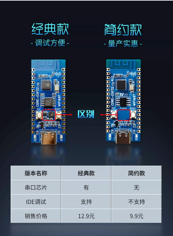 较早期,上海合宙研发了两款性价比超高的开发板,分别为12.9元的经典款和9.9元的简约款,甚至还包邮,如下图: