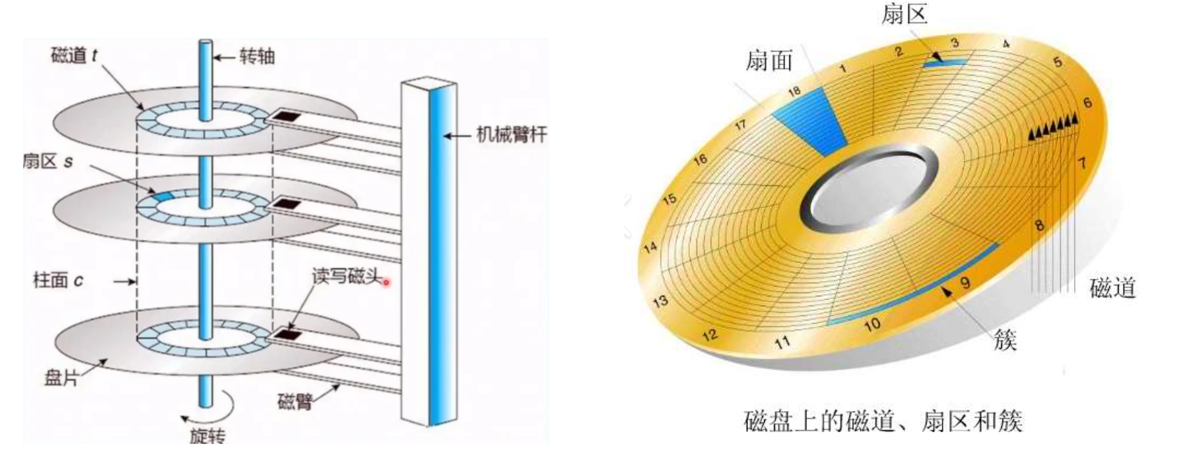- 磁盘容量=磁头数 × 磁道(柱面)数 × 每道扇区数 × 每扇区字节数