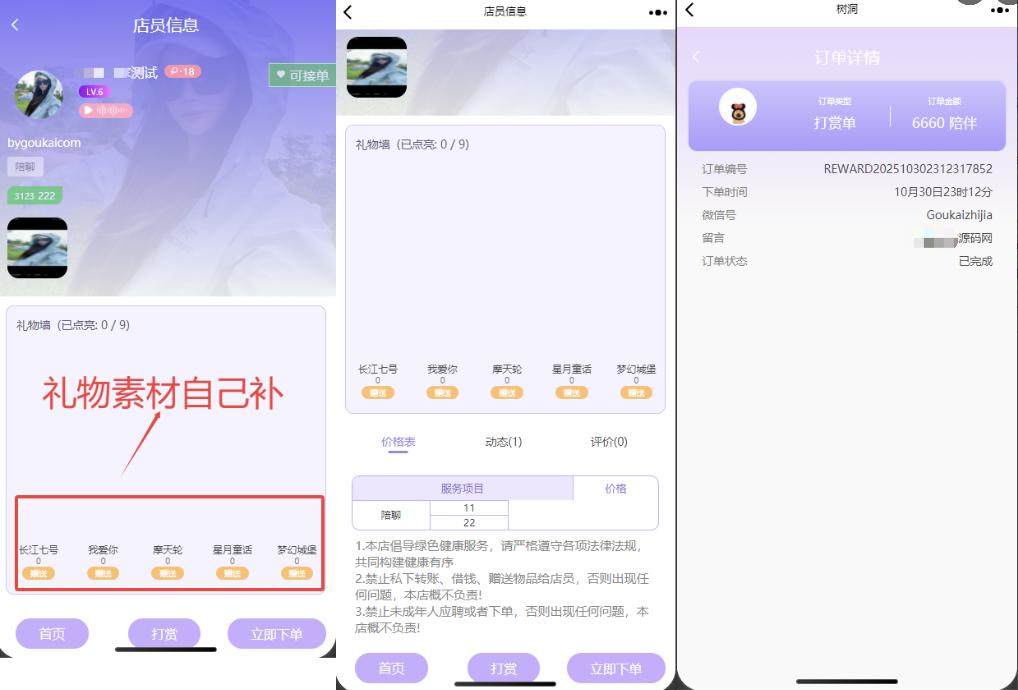 社交互动:心动墙展示、礼物打赏、树洞留言
