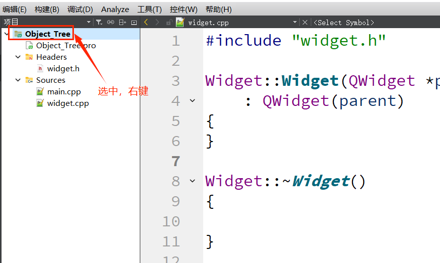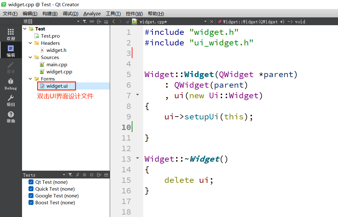 1.双击:"widget.ui "⽂件