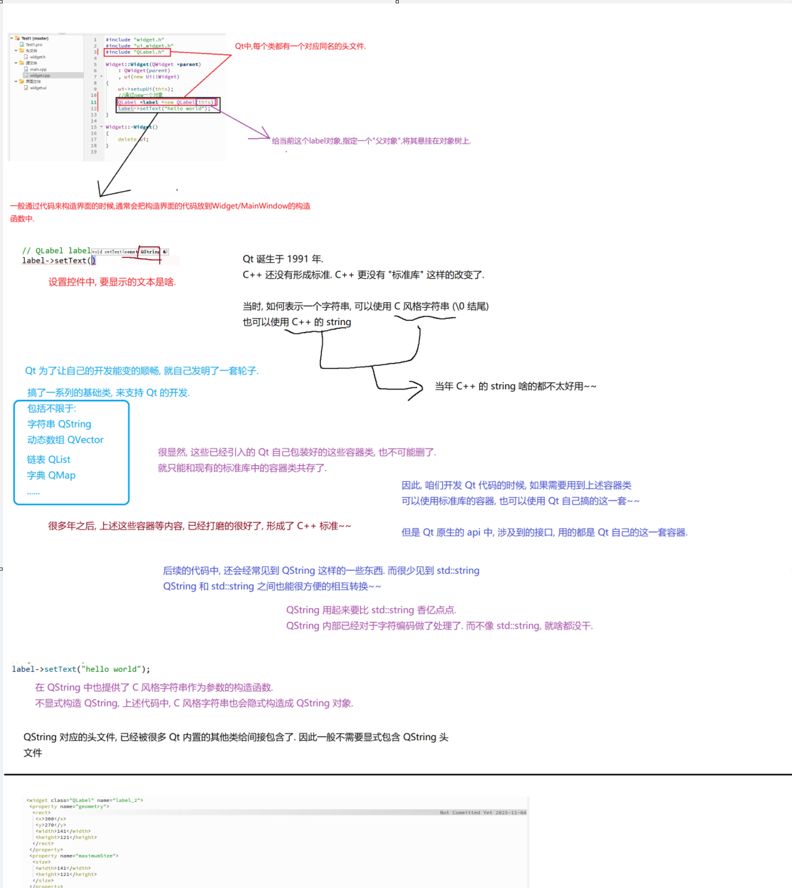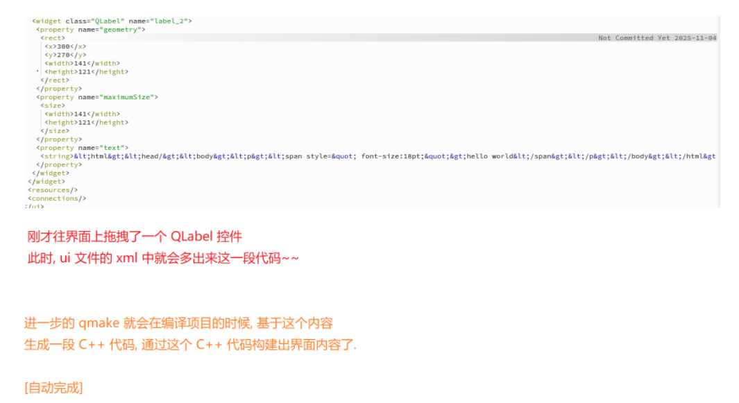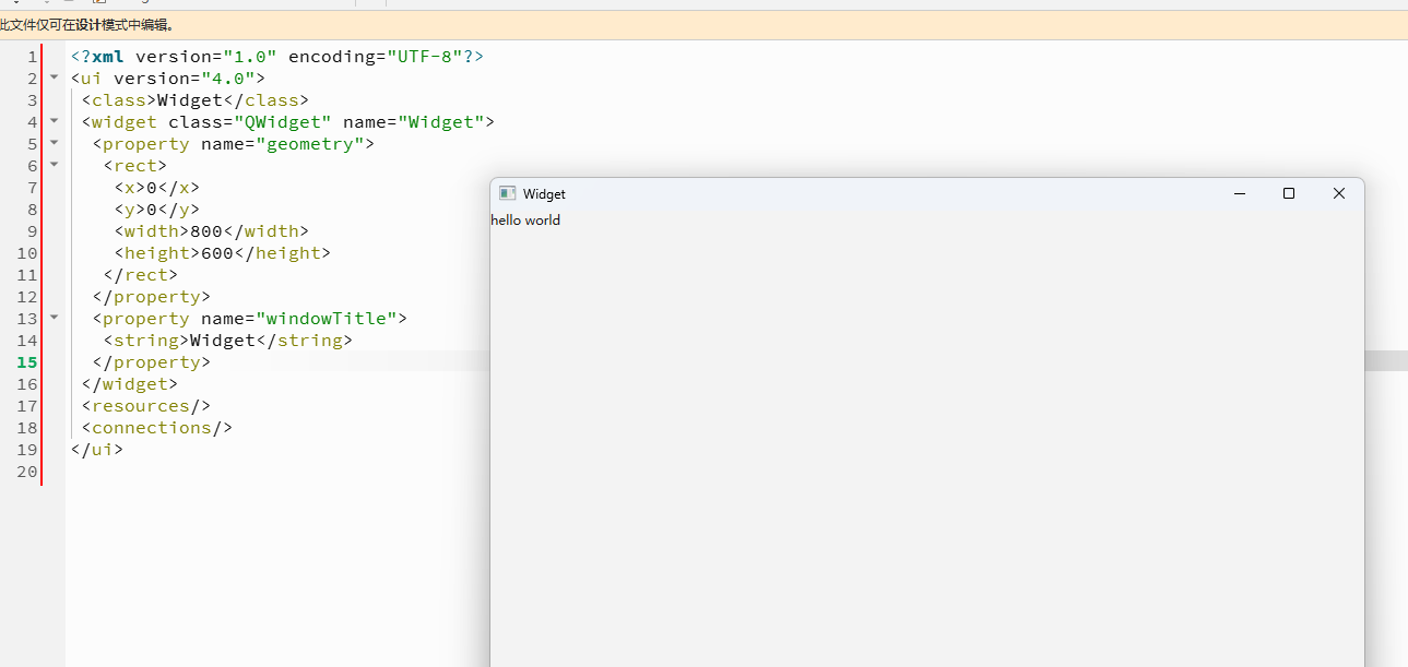 {ui->setupUi(this);//通过new一个对象QLabel *label =new QLabel(this);label->setText("hello world");