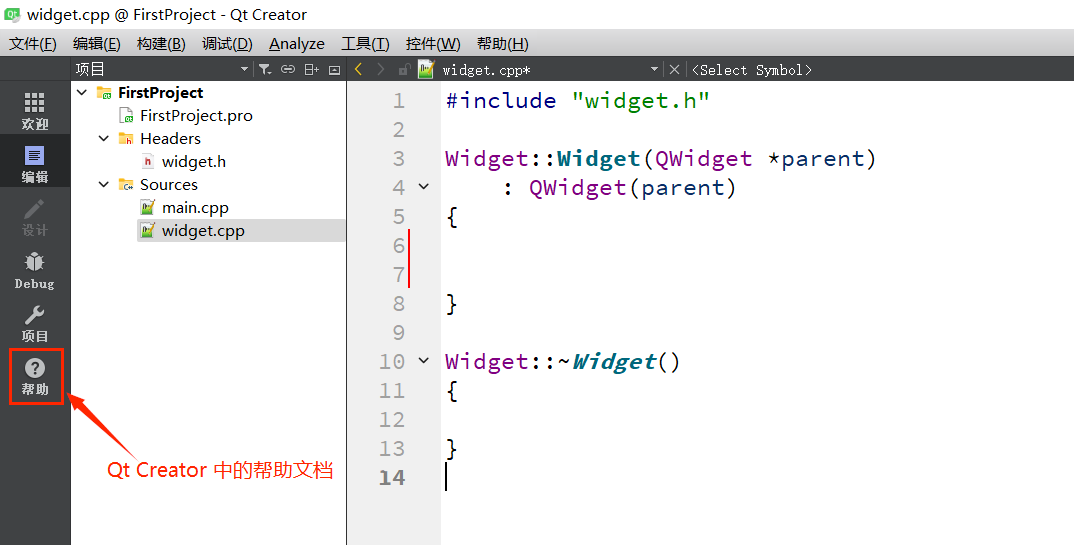 2:Qt Creator 左侧边栏中直接⽤⿏标单击 "帮助" 按钮.