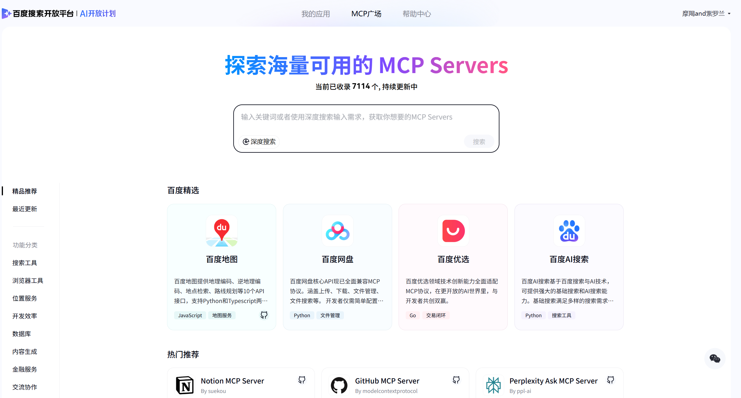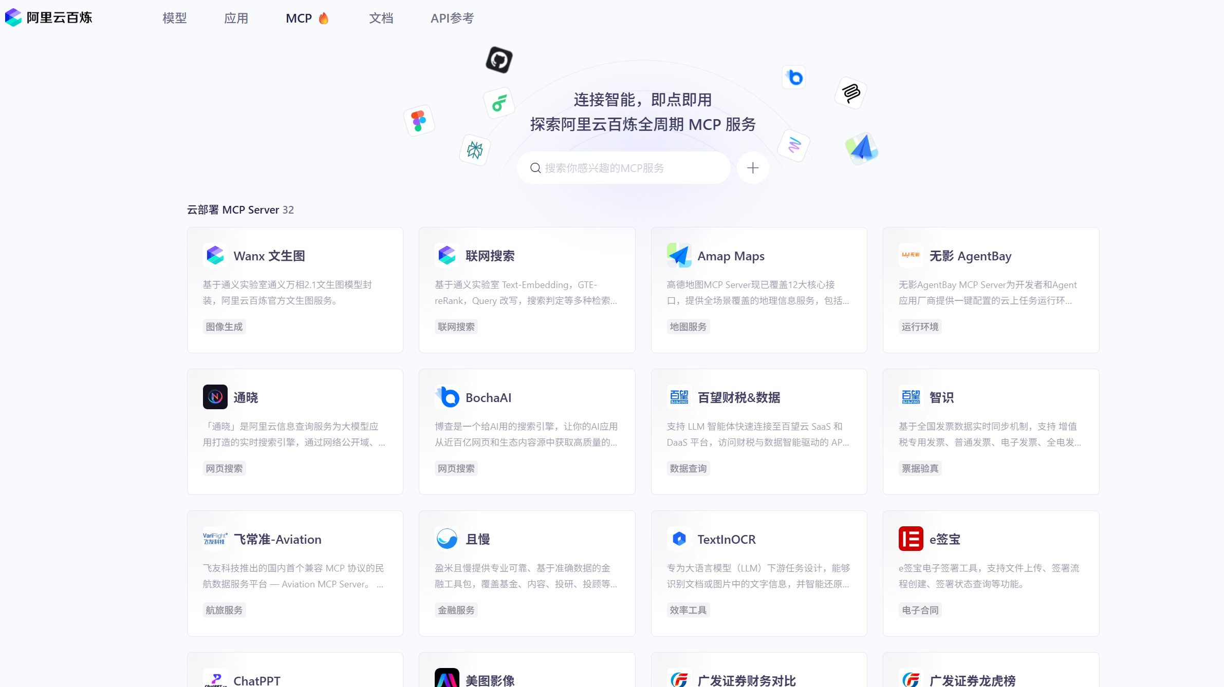 阿里云百炼平台正式推出了全生命周期的MCP(Model-Connect-Protocol)服务,实现了从资源管理到部署运维的全流程自动化。用户仅需5分钟即可快速创建连接MCP服务的智能体(Agent),将大模型技术转化为生产力工具。首批集成了包括高德地图、无影、Fetch、Notion等50余款阿里巴巴集团及第三方MCP服务,覆盖生活服务、办公协同、内容创作等多个领域。