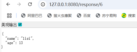 @RequestMapping("/6")@ResponseBodypublic UserInfo method6(){UserInfo userInfo=new UserInfo("lisi",13);return userInfo;}