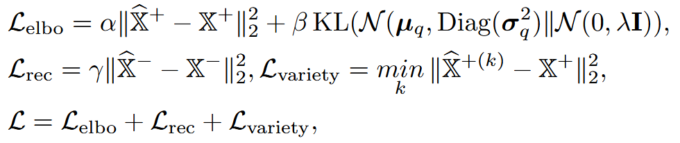 损失由L2范数损失,KL散度损失,和多样性损失构成