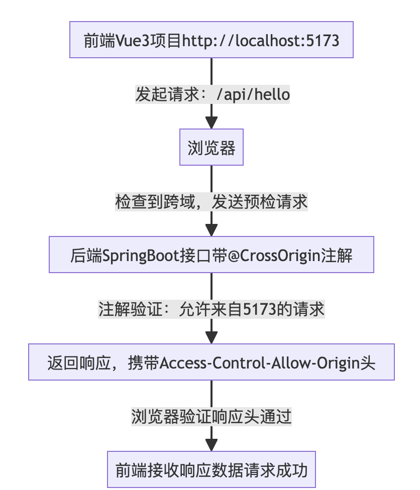 本文聚焦前后端分离开发中常见的浏览器跨域问题,以 SpringBoot 后端和 Vue3 前端为核心场景,系统梳理了 5 种解决方案:后端涵盖单个接口 @CrossOrigin 注解、全局配置类(推荐)、过滤器 Filter 配置 3 种核心方案,前端包含 Vite 代理配置(开发环境专用)、Axios 请求拦截器(配合后端,生产环境可用)2 种实用方案。每种方案均搭配详细实操步骤、可直接复用的代码及清晰流程图,同时提供场景选型指南与常见问题排查技巧,助力读者快速理解跨域原理并根据实际需求落地解决方案。