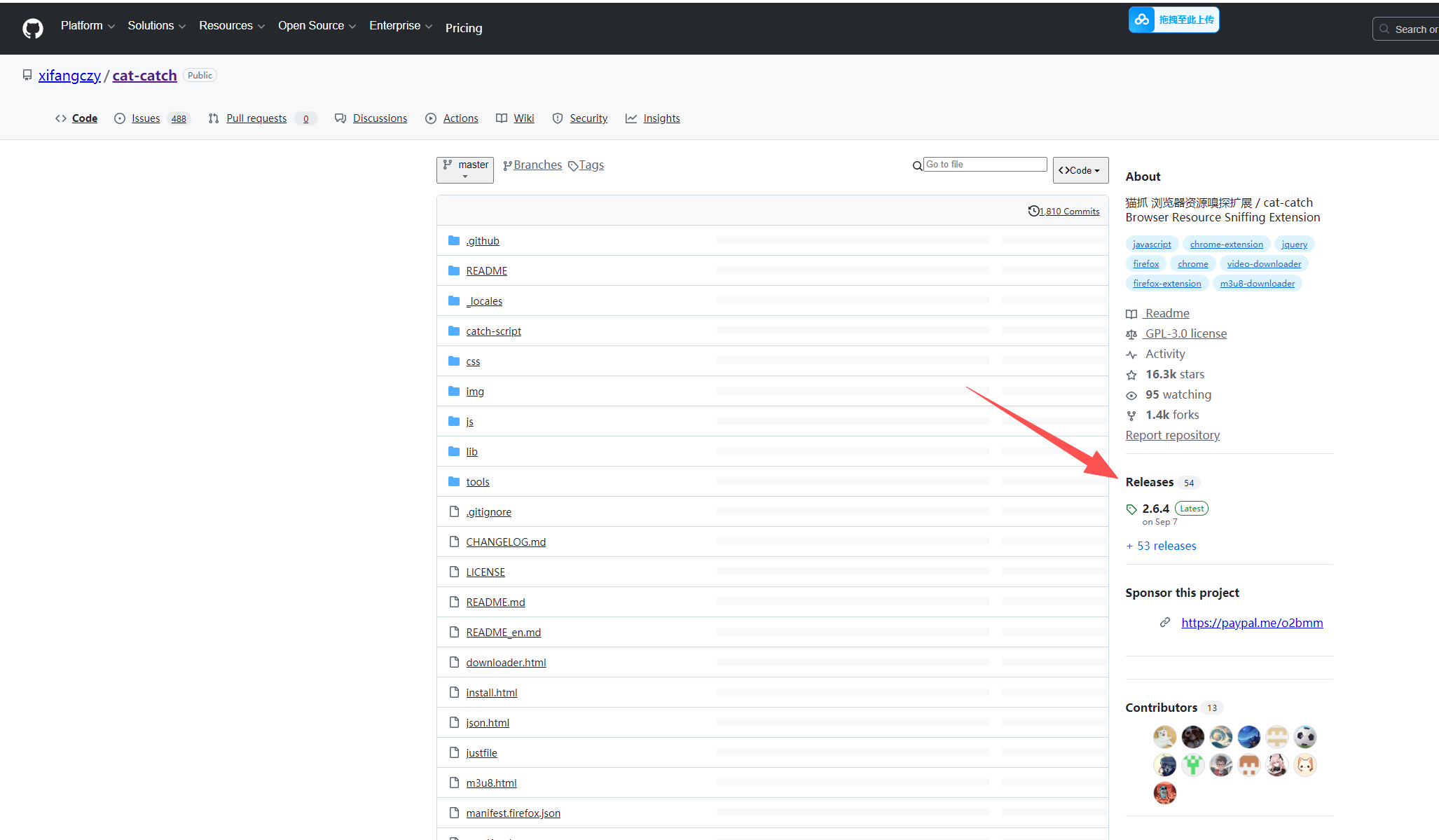 访问猫抓插件的GitHub页面:https://github.com/xifangczy/cat-catch