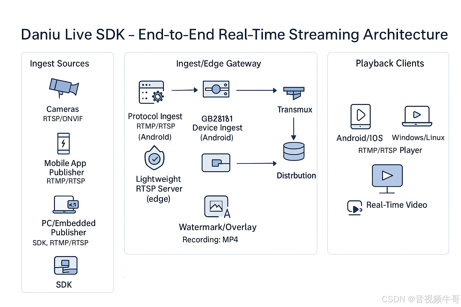 在大牛直播SDK(SmartMediaKit)的体系中,“实时”并非一个抽象的目标,而是一条从采集到呈现的完整链路。我们把时间当作系统的骨架,让每一帧画面、每一段音频都能按既定秩序到达。