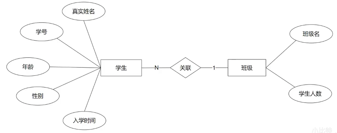- ⼀个班级实体包含的属性有:班级名,学⽣⼈数