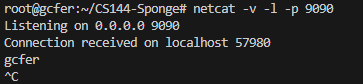 这个互动比较简单,在一个终端输入netcat -v -l -p 9090。整体是一个监听命令,netcat收是“网络瑞士军刀”一个简单的Unix工具用于读取和写入网络连接,是-v表示详细模式,-l表示listen接听,-p 9090表示指定端口9090)。