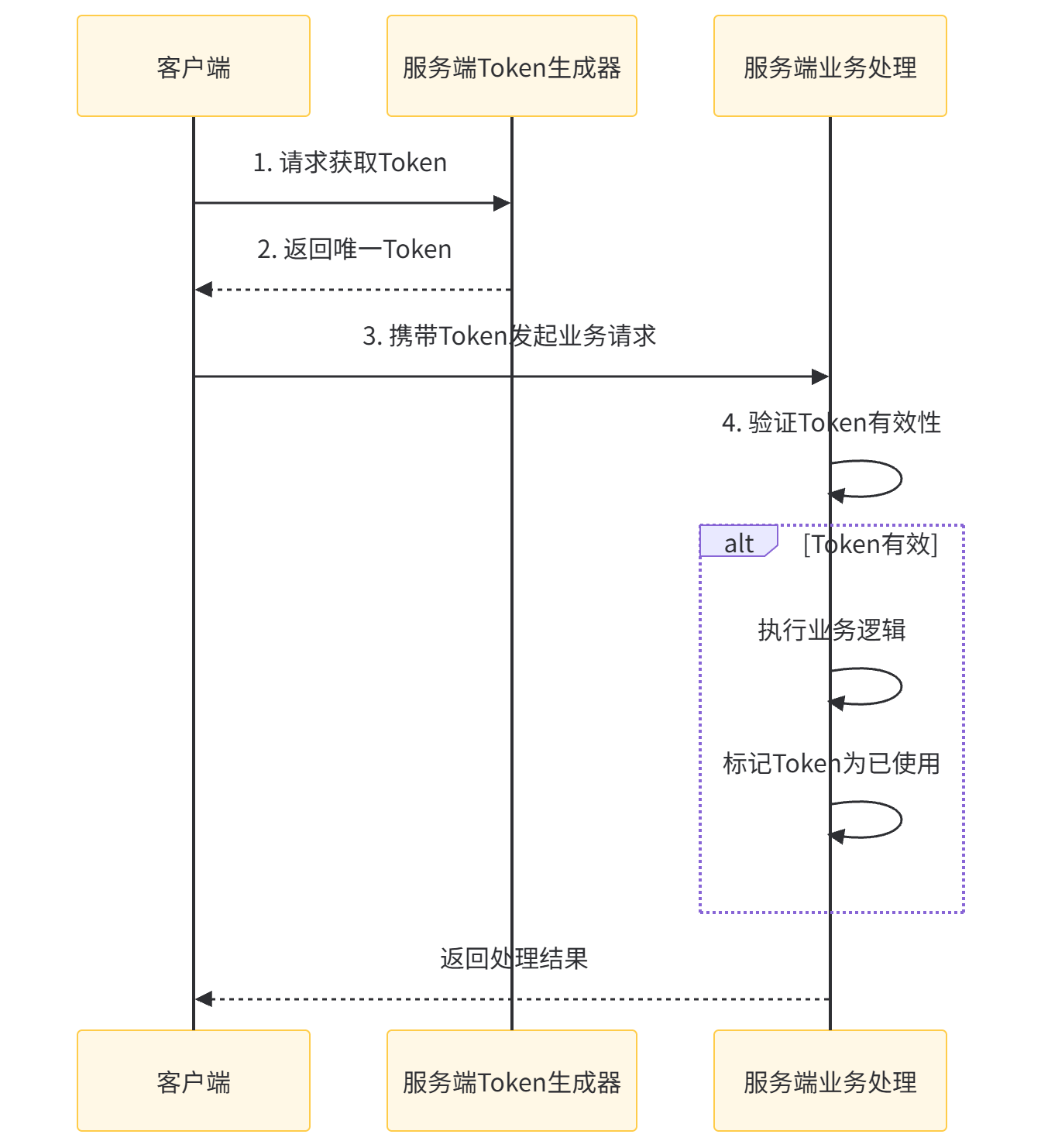 - 客户端请求前先向服务端申请一个唯一的令牌(Token)