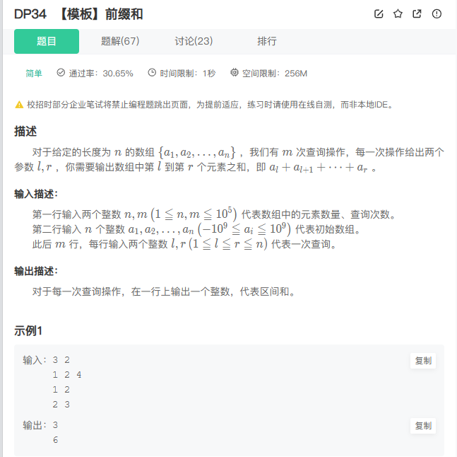 【模板】前缀和_牛客题霸_牛客网