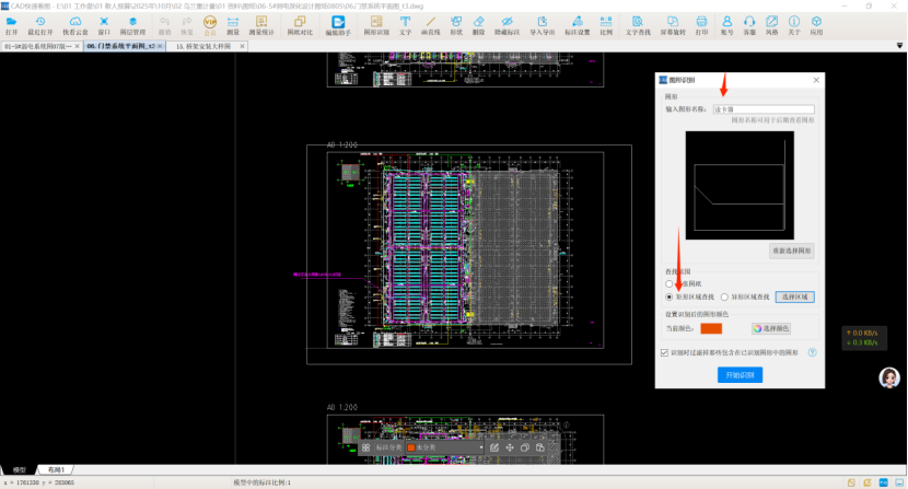 使用CAD快速看图的图形识别命令,框选图例后,点击右键,在弹出对话框内,输入相关信息,框选图纸范围,以二层为例。