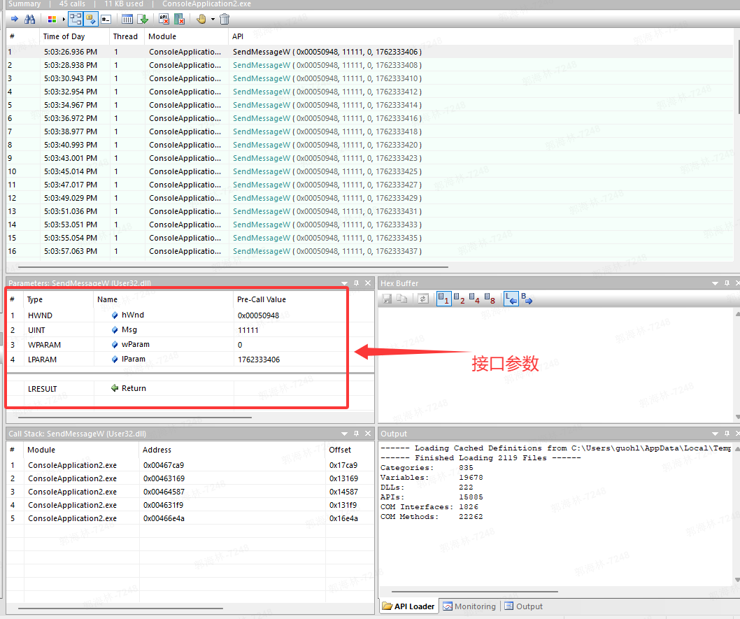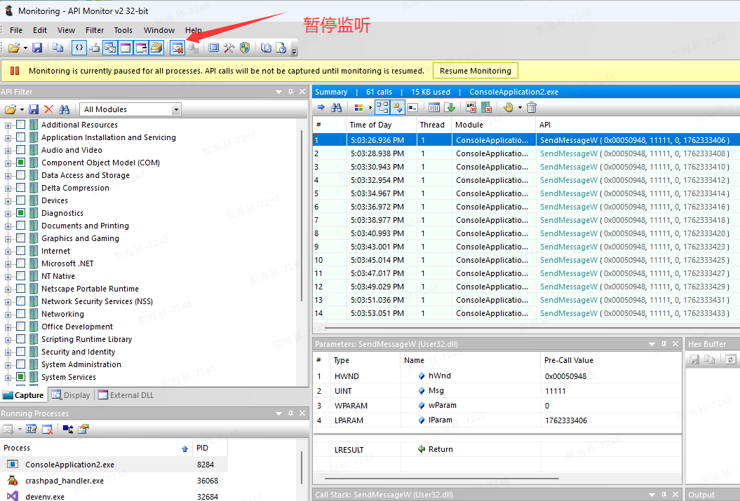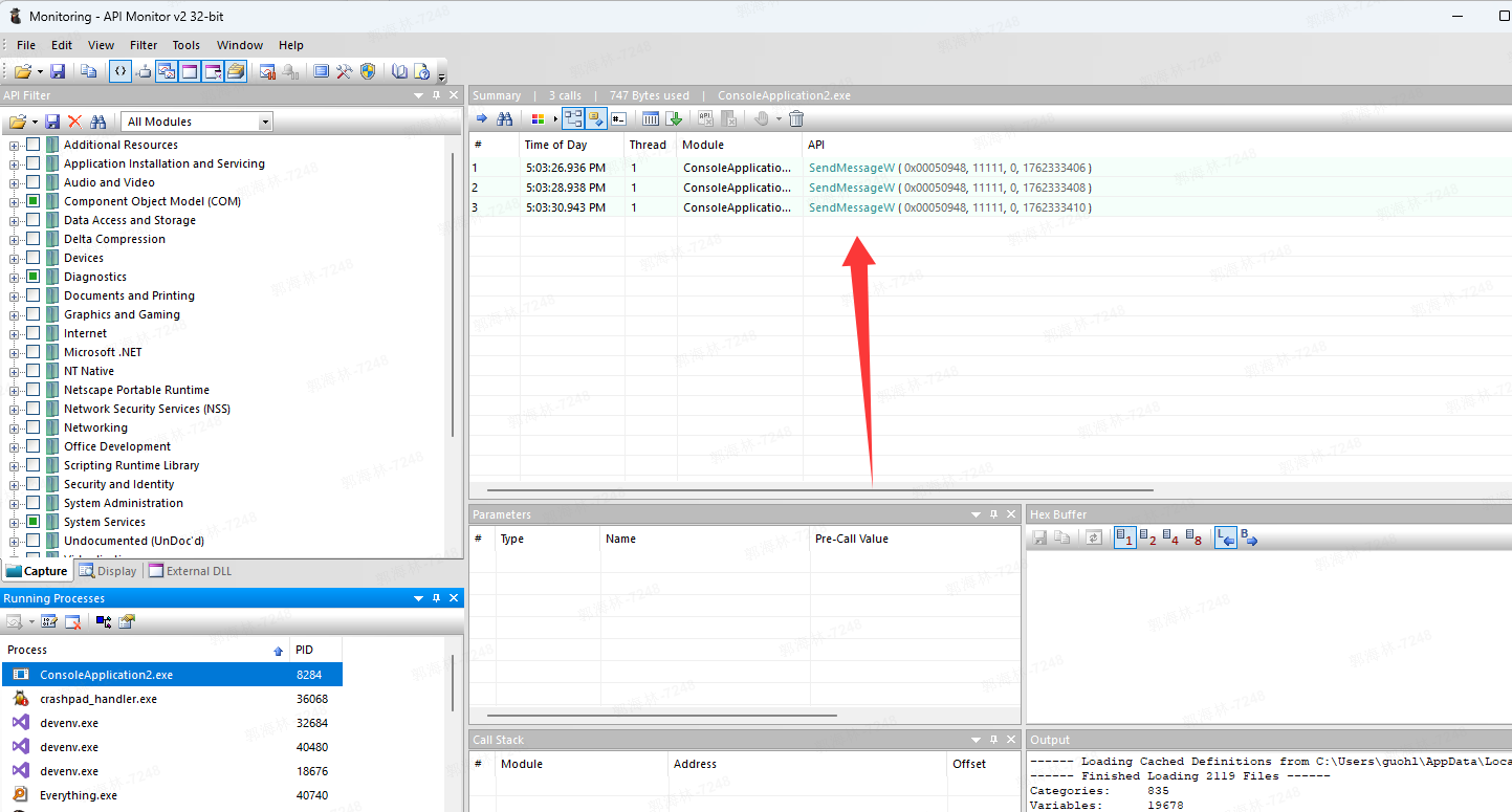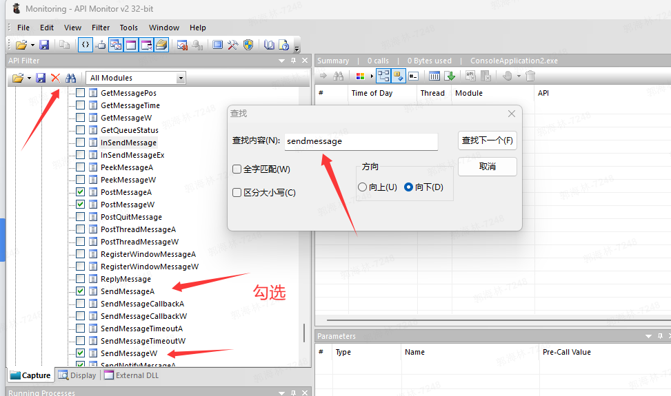 2.1、选择要监听的API(示例中:监听sendmessage,同样原理你也可以监听其他API)