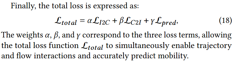 对于损失C2I来说,首先给出某地的群体数据峰值,这一峰值会有一个时间,那么将个体轨迹数据中此时此刻在此地的样本列为正样本,其余当作负样本,以此来计算对比损失使正样本越来越近负样本越来越远。