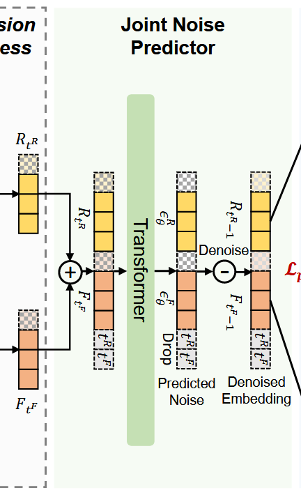 最后再将两种去噪后的数据分开,分别进行预测,得到预测损失L_pred。