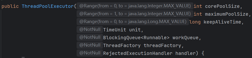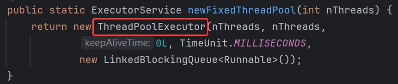 查看线程池的源代码,发现是调用了ThreadPoolExecutor构造方法