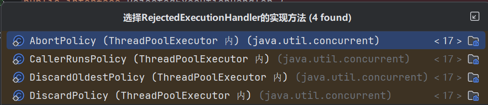| RejectedExecutionHandler handler | 拒绝策略 |