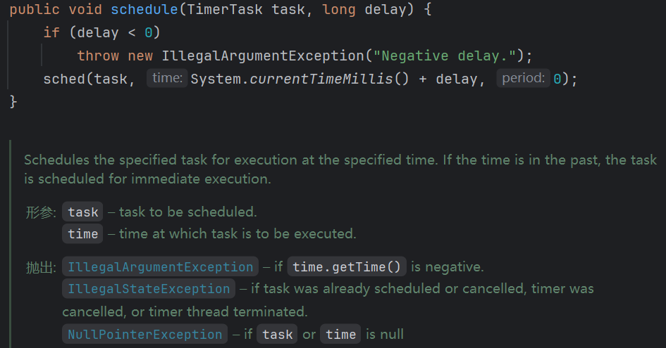 再看延迟时间是如何设定的,System.currentTimeMillis()获取了当前时间,再加上我们设定的delay时间,就可以得到要执行任务的具体时间
