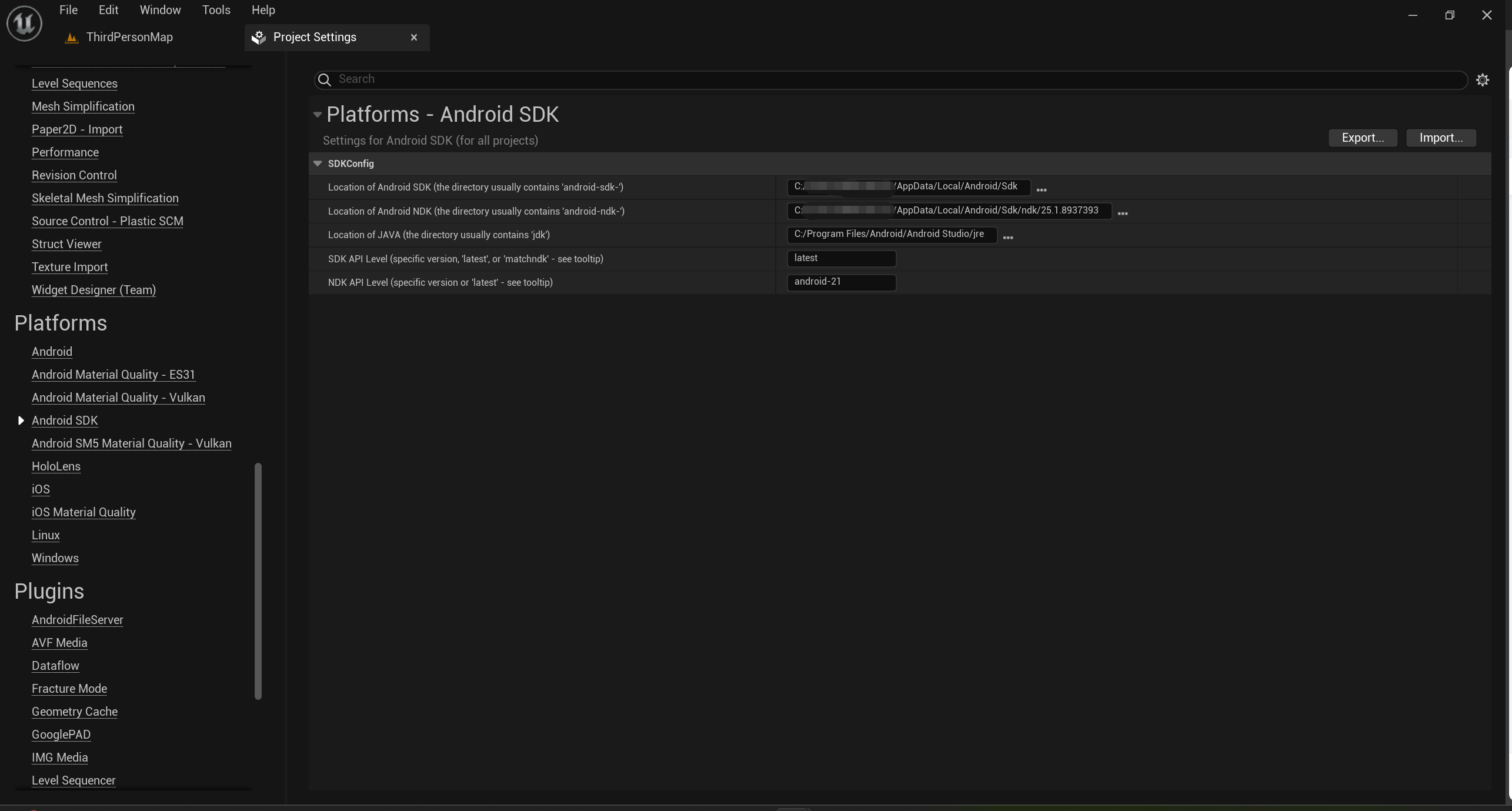 查看UE需要的安卓环境的NDK,SDK对应的版本