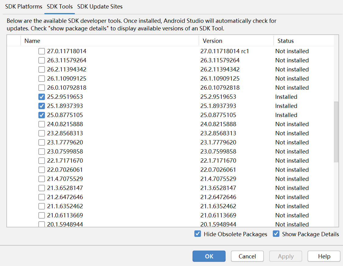 找到下载起对应的等级当然也可以多下载几个(我这里其实下载的是其他的几个等级的打包还是成功了)