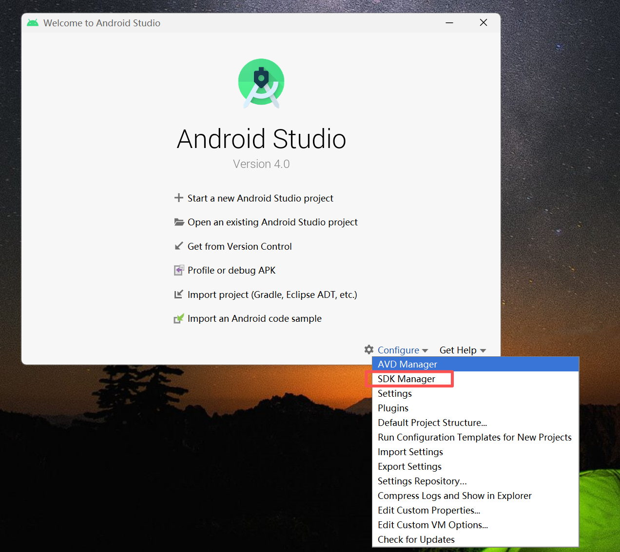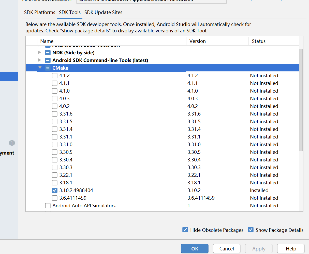 配置环境路径 SDK NDK 默认路径在缓存文件里面 JDK就选在Android Studio的jre