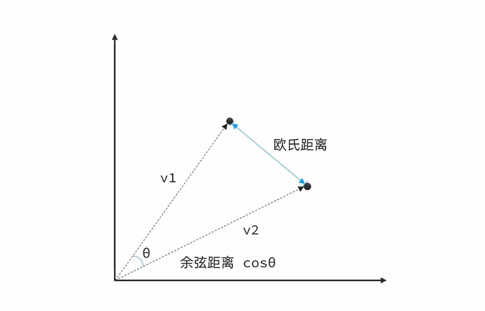 首先理解向量,向量就是数学中代表一个既有大小又有方向的量,物理上也称为矢量,例如平面直角坐标系上从(0, 0)点到任意一点构成的线段就是一个向量,向量相似度指的就是两个向量是否相似,通过欧氏距离和余弦距离都可判断相似度,欧氏距离越小,相似度越高,余弦距离越大,相似度越高