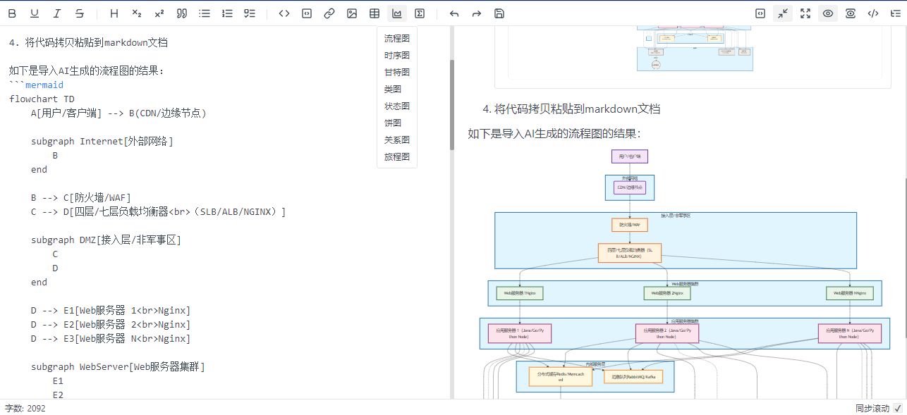 - 粘贴代码:将mermaid代码粘贴到编辑框
