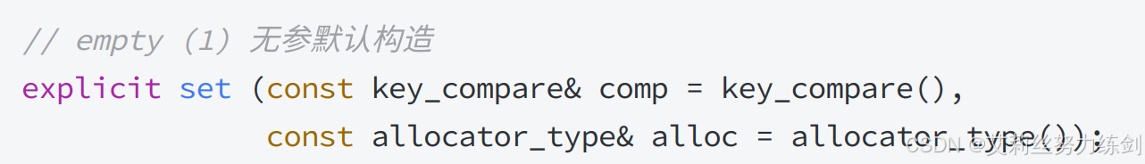 explicit set(const key_compare& comp = key_compare(),const allocator_type& alloc = allocator_type());// range (2) 迭代器区间构造