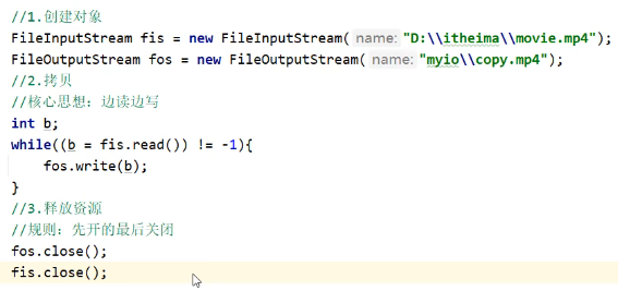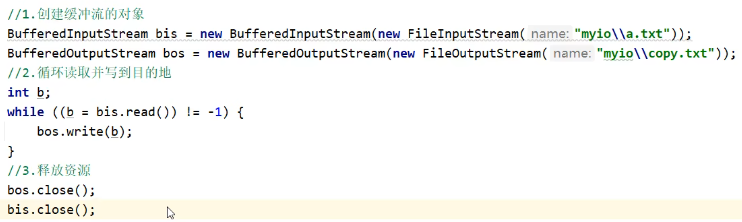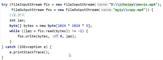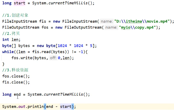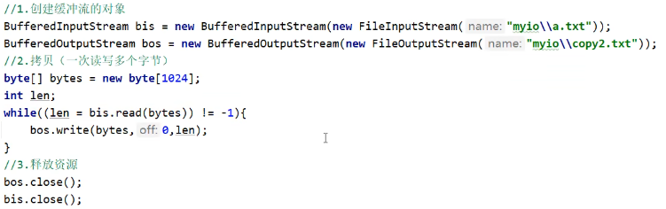 文件拷贝(一次读写多个字节),节省运行时间