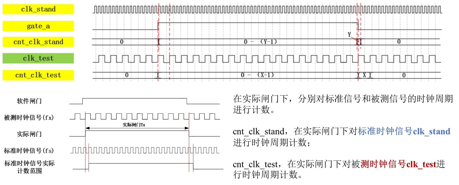 首先分别对实际闸门下被测时钟信号和标准时钟信号的时钟周期进行计数。