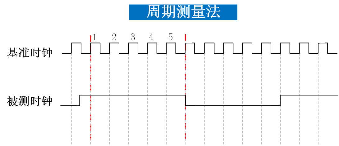 周期测量法:先测量出被测时钟信号的时钟周期T,根据频率f = 1 / T 求出被测时钟信号的频率。