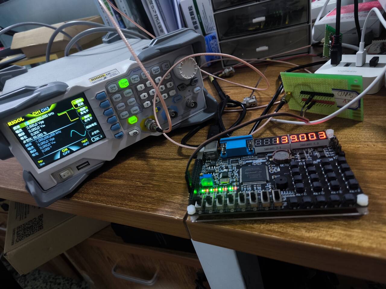 可以看出精度还是很高的,能够在上百K的频率下,实现个位数的分辨率。至于上M后的频率,我就没有进行测试了,而且我使用的这台信号发生器最高只支持25M的方波输出,也不方便我进行测试。就这样吧。