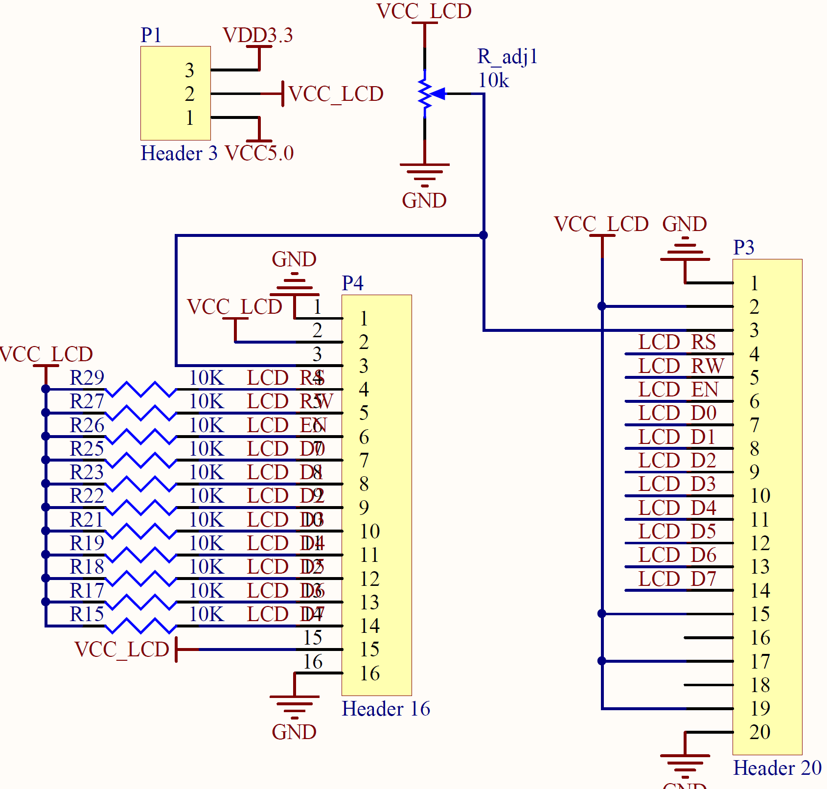 后来我导师让我查看一下VCC_LCD能否断开。我发现了P1是使用跳线帽来对VCC_LCD进行电压选择的,也就是说:当P1不接入跳线帽,那么VCC_LCD实际就为开路,这个时候可以视作有关LCD的引脚直接与FPGA芯片相连接,也就是说可以当作普通的IO使用。
