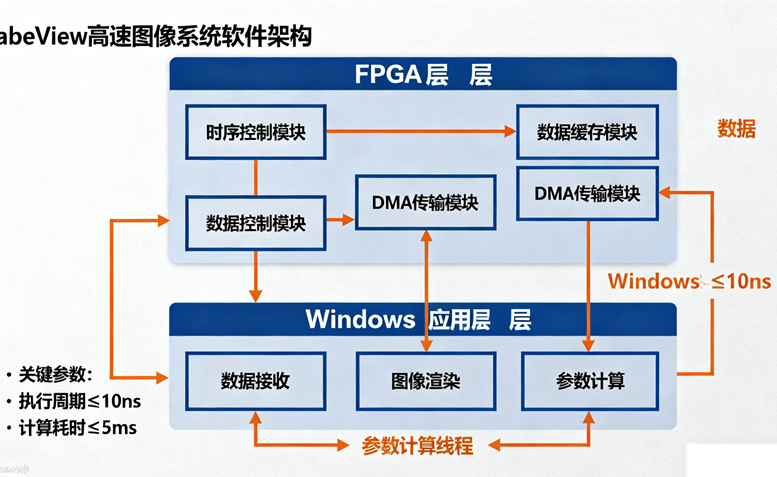 含数据接收线程(处理 DMA 中断)、图像渲染线程(调用 IMAQ Vision 库实时显示)、参数计算线程(MTF / 信噪比实时分析),通过队列机制实现线程间数据隔离。