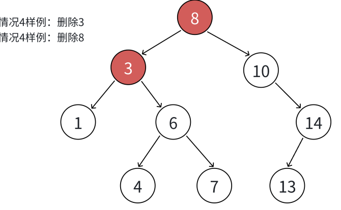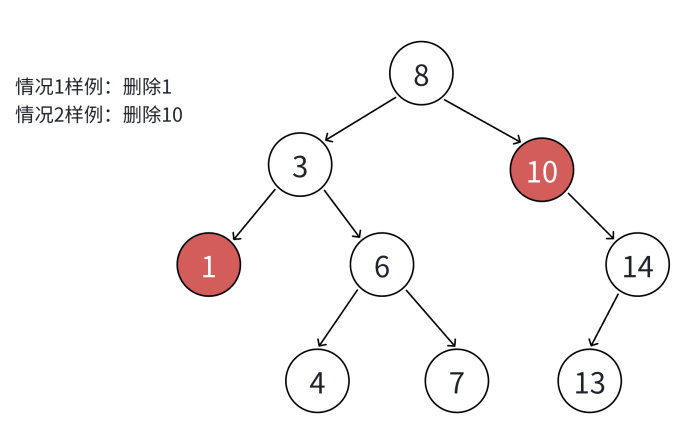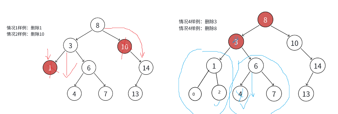 如果查找元素存在则分以下四种情况需要分别处理一下(假设要删除的结点为N)