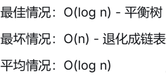 - 最多查找高度次,走到到空,还没找到,这个值不存在