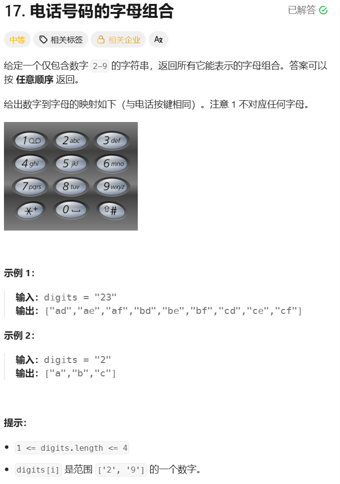 //先将res的空间预留出来,随便用一个字母填充,反正后面都会被覆盖掉,这里先用‘x’填充//res用来临时存每次的字母组合sstr(digits, 0, ans, res);return ans;}
