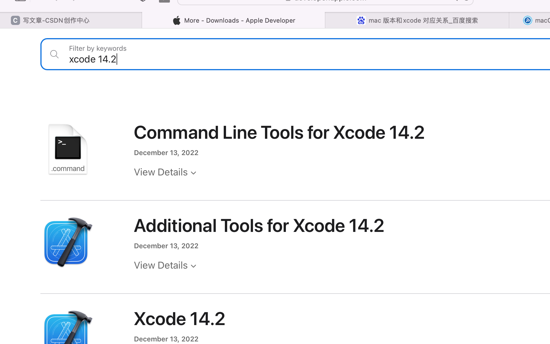 xcode 和 command Line Tools for xcode 这两个需要安装下