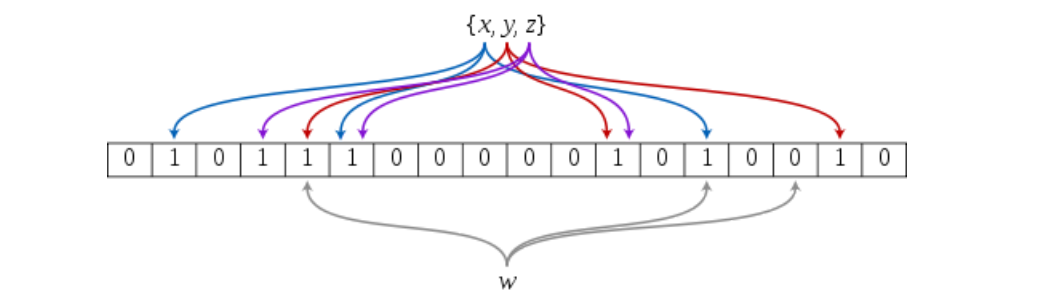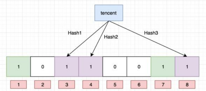 这里如果我想判断一个csdn是否有存入,如果给出的是1.5.8,那么5为0说明没有任何一个值映射到这个 bit 位上,因此我们可以很确定地说 csdn 这个值不存在。