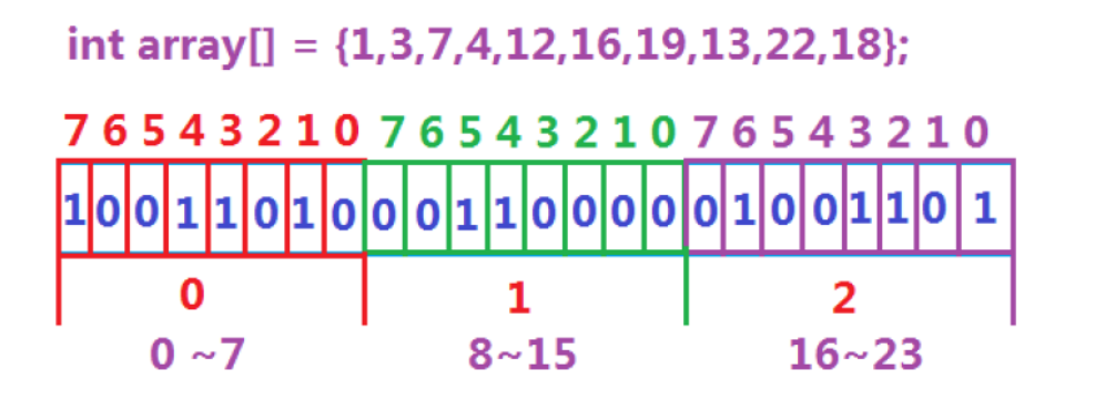 个二进制比特位来代表数据是否存在的信息,如果二进制比特位为1,代表存在,为0