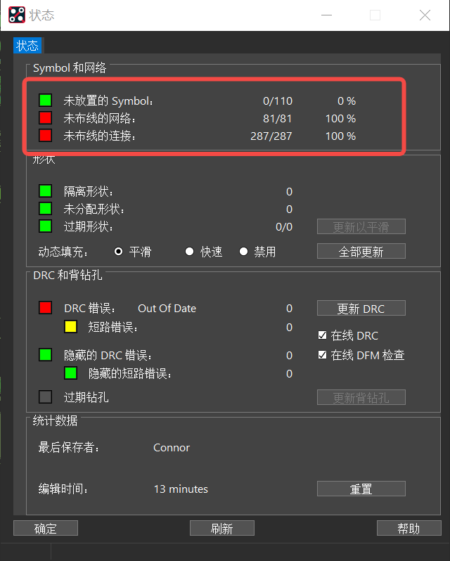 之后点击显示 -> 状态,能看到新导入的元件没放置